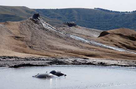 Berca je kousek, tak jsem tam brzy a sám. Zaplatím 3 lei za parkovné na celý den včetně toalet a světe div se, zde daleko od civilizace funkční Wifi! Bahenní sopky jsou úžasné. Sopouchy jsou zasazené v měsíční fantaskní krajině přetvořené vodou. Šedé bláto uvnitř sopek bublá a vytékají z nich lávové bahenní jazyky. Po celém areálu se můžete volně pohybovat, tak fotím a fotím. Když se vrátím na parkoviště, chvíli mluvím s provozovatelem. Ač na to nevypadá, umí anglicky, což je ve zdejších krajích výjimka. Radí mi další cestu a připomíná mi, abych nezapomněl o jeho parkovišti s přilehlými sociálkami a restaurací se stylovým slaměným venkovním posezením říct mým přátelům. Jelikož je na něm vidět, že se o vše vzorně stará a za své 3 lei dostanete na zdejší poměry nadstandardní služby, tak tímto tak činím. Na přilehlém plácku prý můžete i kempovat a zrovna se tam jeden anglán s přívěsem balí.